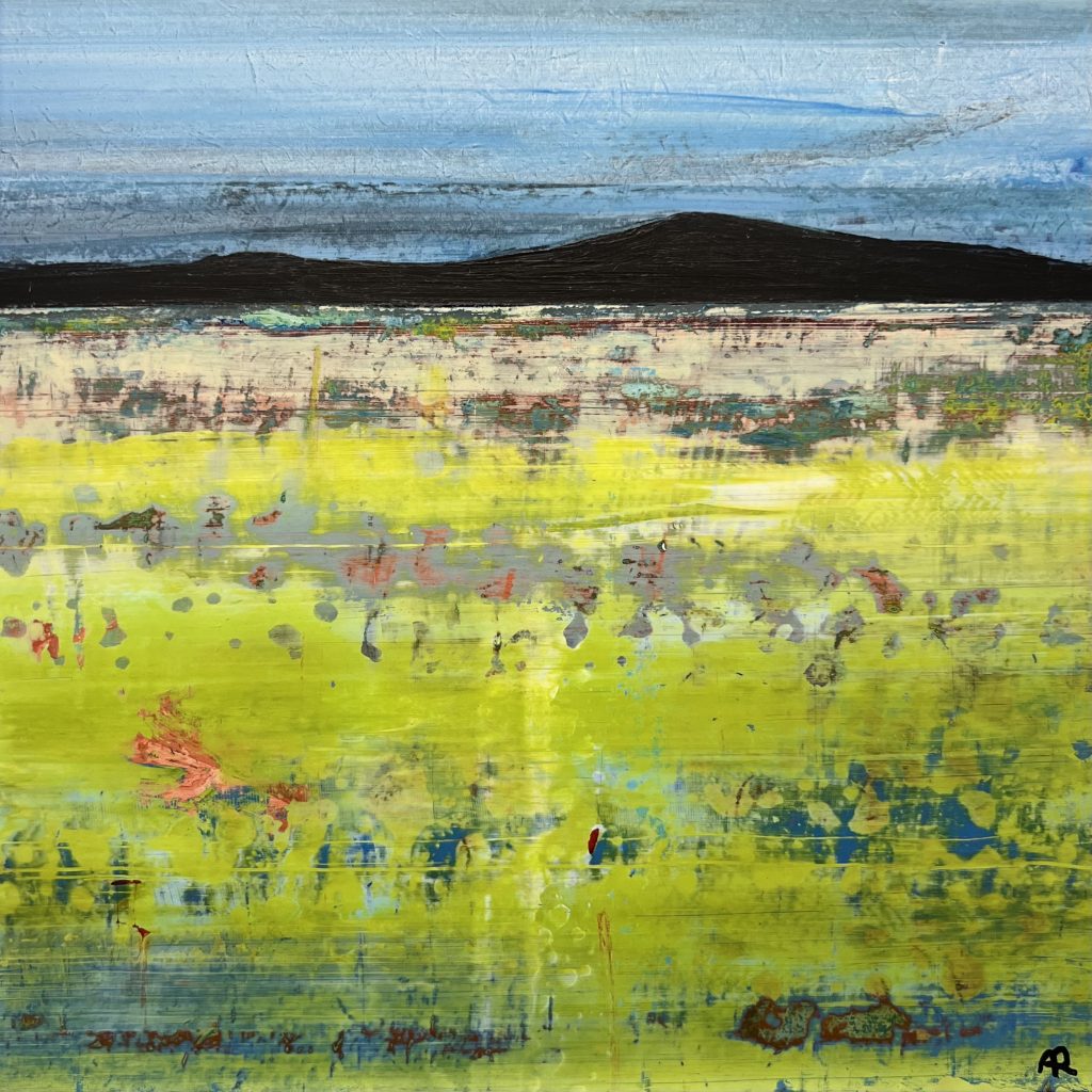 The Highlands and Islands of Scotland and the reminiscent landscapes imagined in the worn paintwork of the abandoned boats and buildings found in these special places, inspire my semi-abstract landscapes.