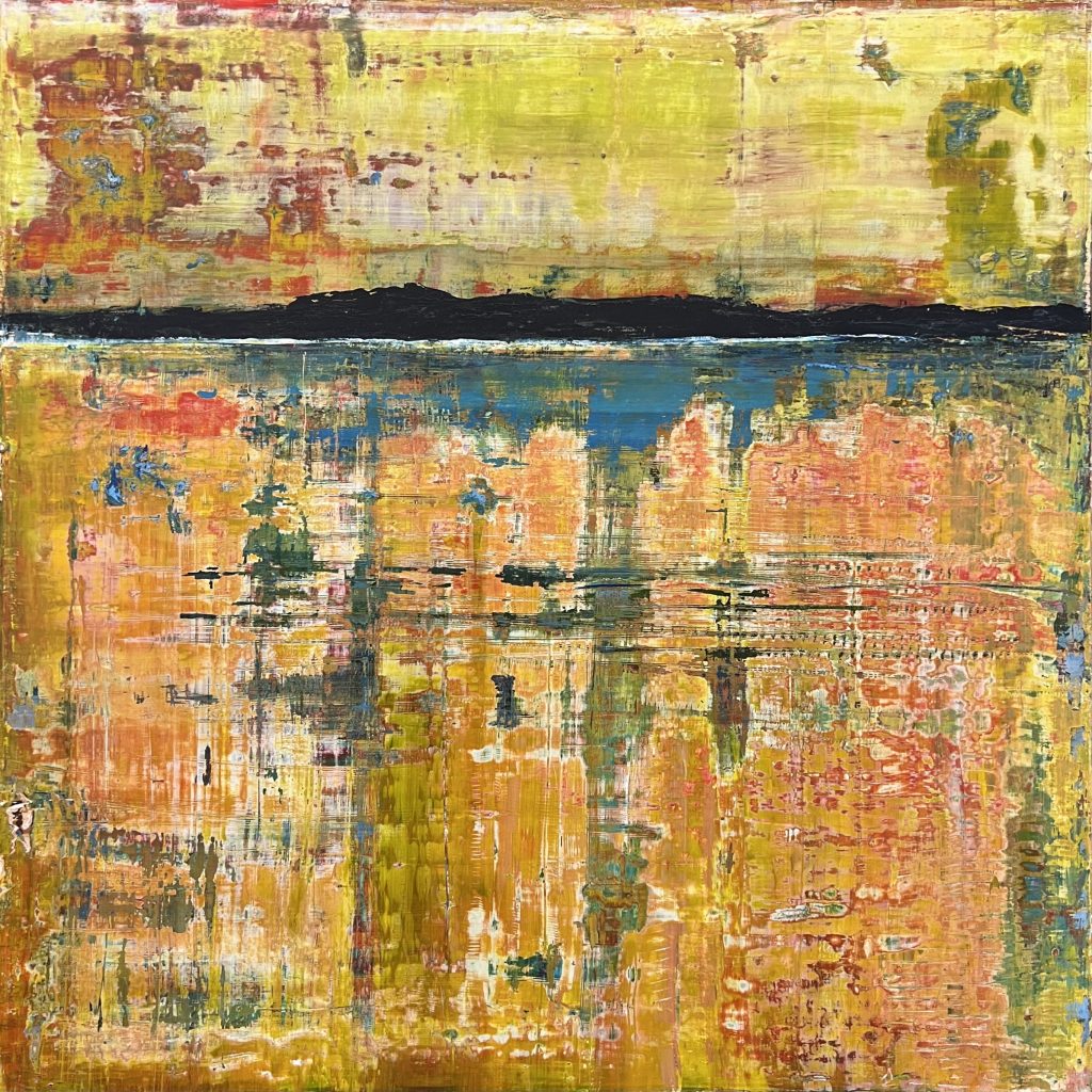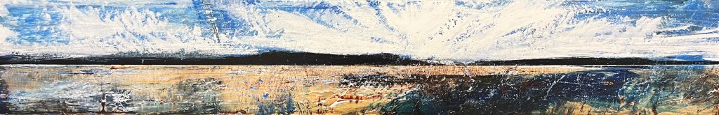 The Highlands and Islands of Scotland and the reminiscent landscapes imagined in the worn paintwork of the abandoned boats and buildings found in these special places, inspire my semi-abstract landscapes.