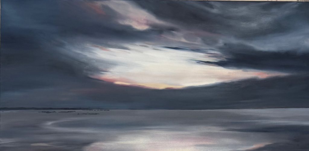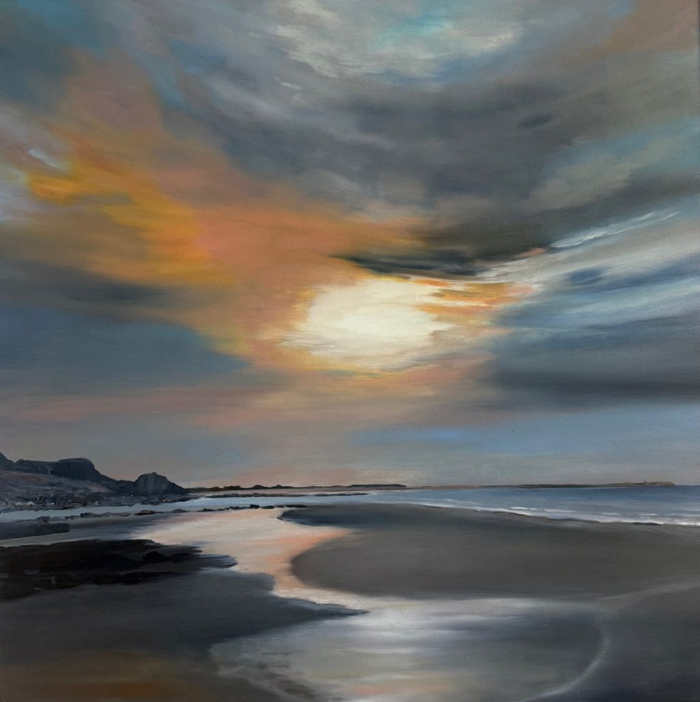 Seascapes and memorable places around East Lothian and beyond are my main inspiration. I aim to capture the big skies and changing light that we’re so lucky to have on our Scottish beaches. I hope to take the viewer to those places, to jog a memory, smell the sea air and be transported there.