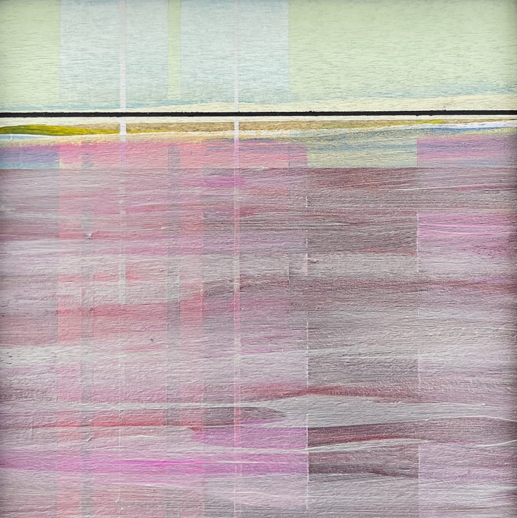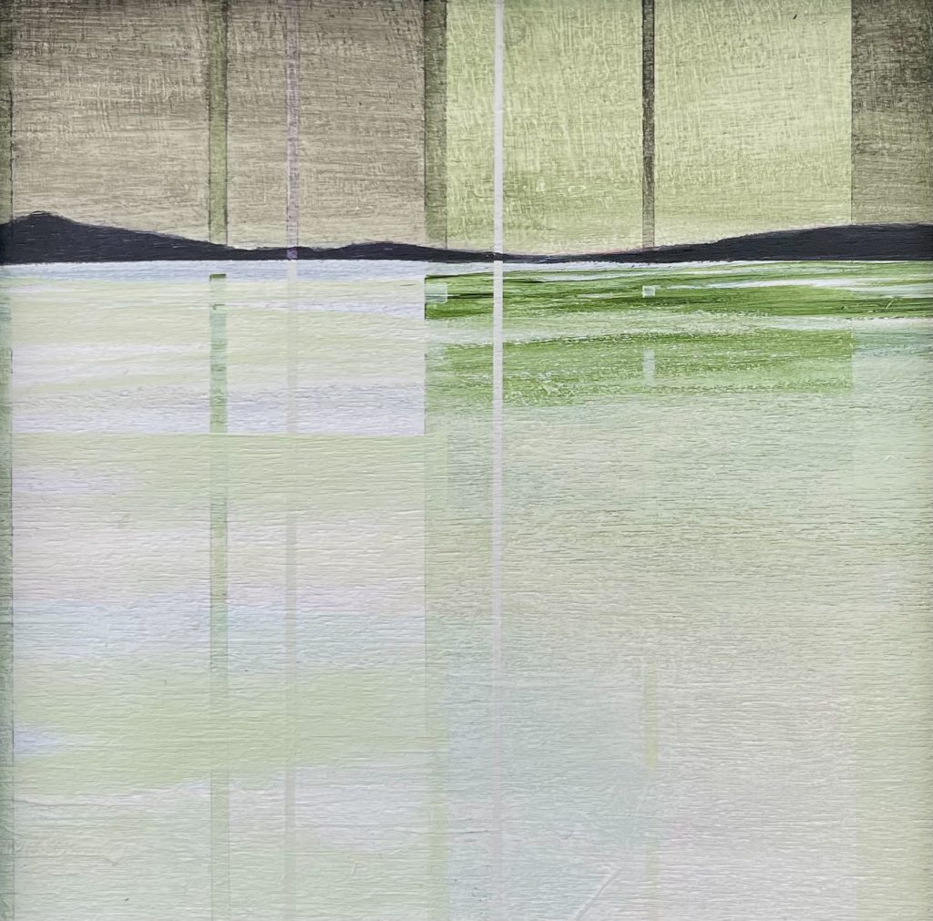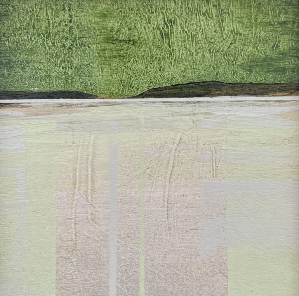 Traces of coastal landscapes appear, evolve and merge, with influences spanning from the Scottish Isles to Scandinavia and Iceland to Croatia and France. The gentle curve and fall of Orkney beaches is a recurring image. Jade then combines with colours or atmospheric moods from the weather and season around her when painting – connecting and mixing her memories and ideas into something bigger that transcends a single place or time.