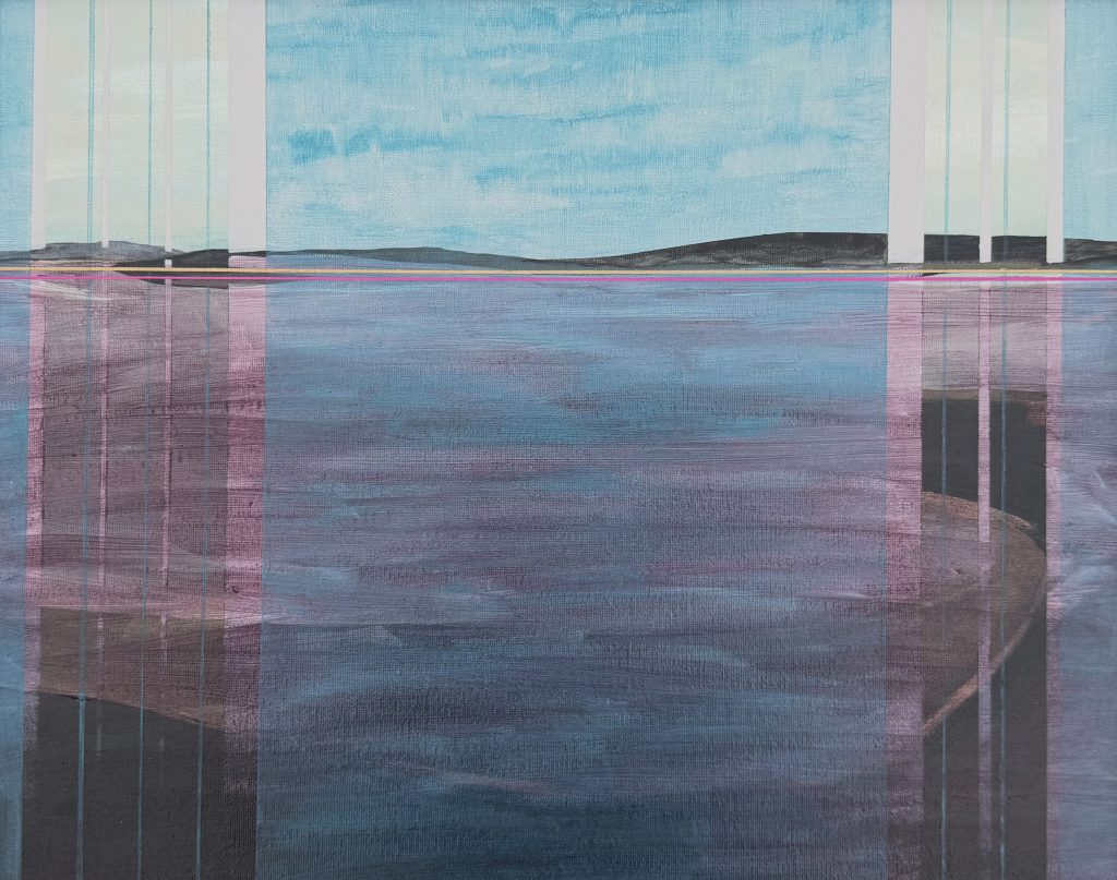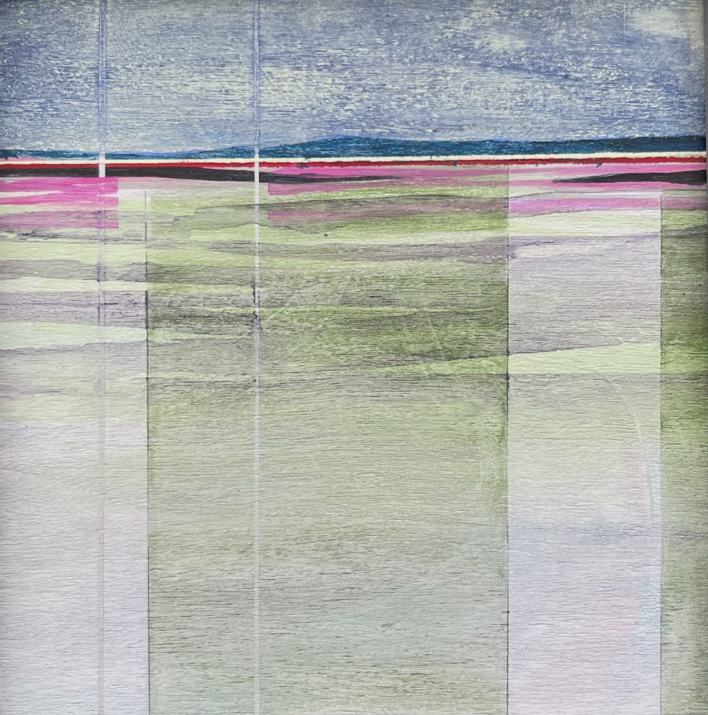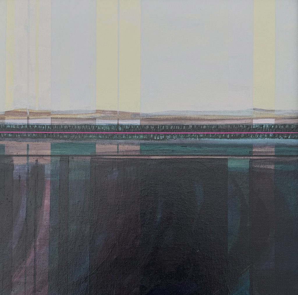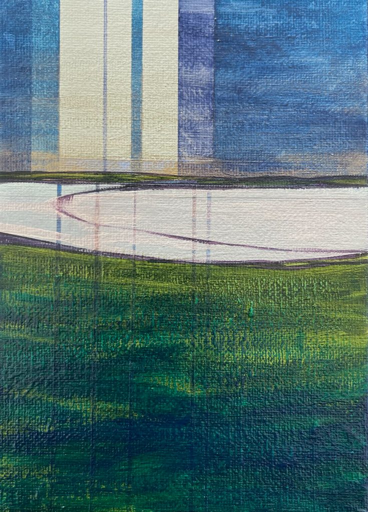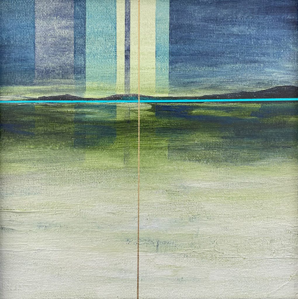 Jade paints from her garden studio, using acrylic, oil and watercolours to capture reimagined abstract landscapes and seascapes. She focuses on composition, light, layers and atmosphere. Using these to recreate memories of the Orkney Isles landscape and weather in which she grew up. She mixes these visions with the landscapes around her now in the Scottish Central Belt and from recent holidays. Combining these strands into imagined landscapes, not realistic representations.