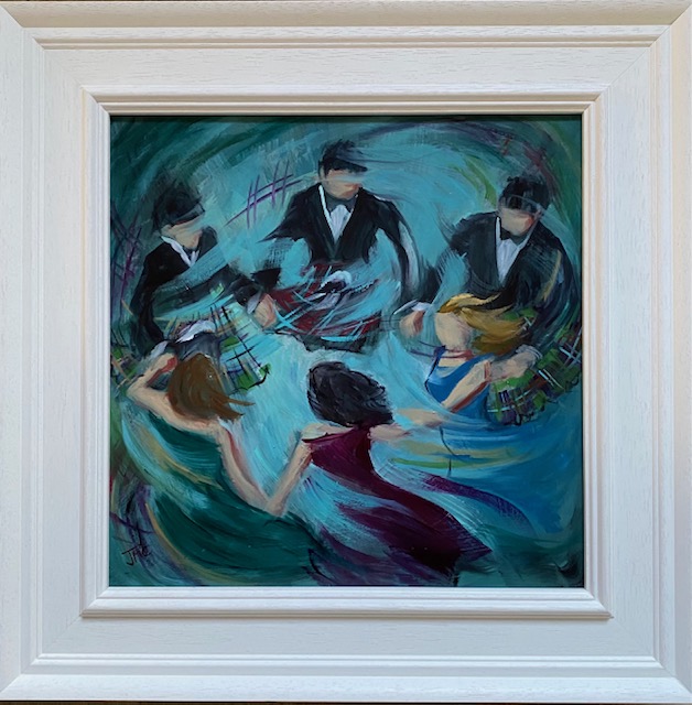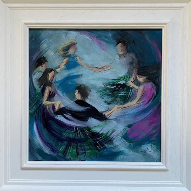 Janet has been painting for over 20 years and the main body of her work is semi-abstract, mainly expressed in her paintings of Scottish Dancers