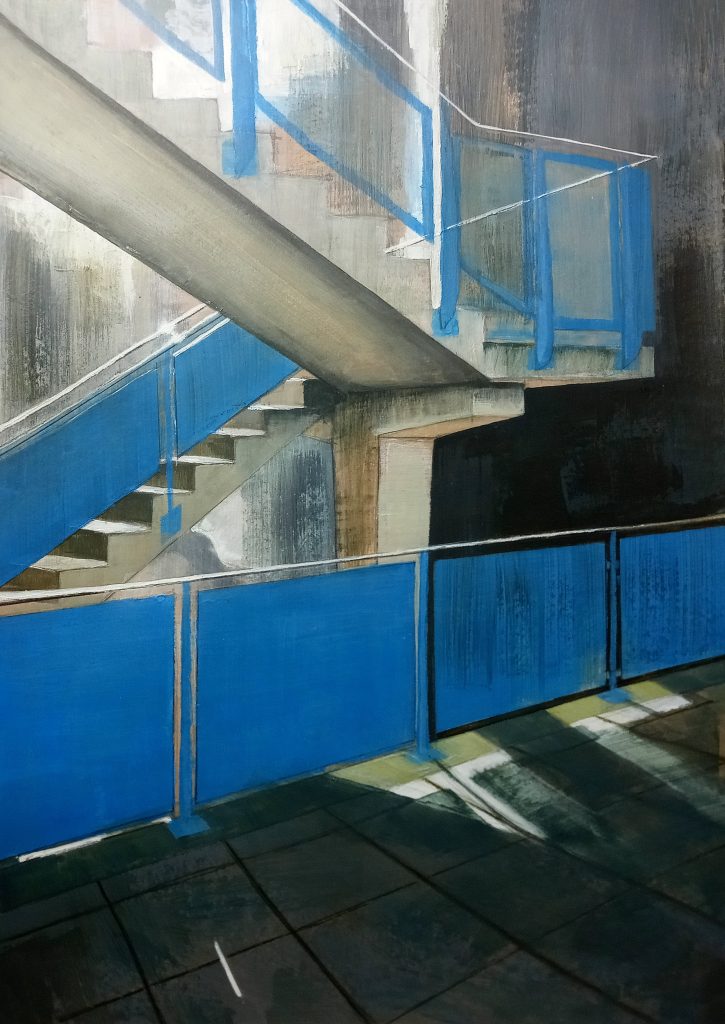 Painting is the mainstay of her practice with drawing a fundamental, underpinning aspect. Lindsey’s paintings examine built environments seeking simple, overlooked observations with a fascination and intrigue of the everyday. Her work has a sense of narrative and an atmosphere of calm which draws the viewer in. She explores the rhythm of light and shade, often on the seemingly ordinary.