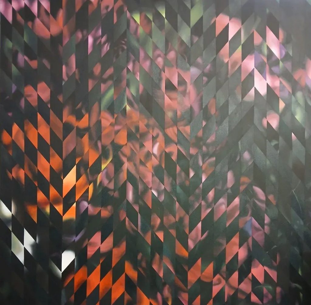 Michelle’s creative process involves breaking down an image and restructuring it bit by bit, a method that reflects her perception of her surroundings. This approach gives each small part of the composition equal status, challenging the traditional idea of a main focal point. Through this technique, Michelle invites viewers to experience the world from her perspective, where every small detail holds significance and contributes to the overall narrative.