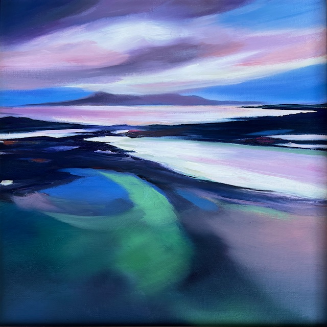 The changing light and atmospheric effects have provided endless ideas and I seek to capture something of that. My palette is strongly coloured with a wide tonal range, principally in oils. The physical act of painting is important to me with paint surface a prominent element as I strive for simplicity of form and overall unity. The paintings I have recently completed attempt to envelop the viewer in the prevailing atmosphere.