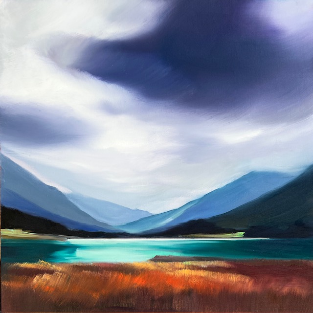 My inspiration is derived from the magnificent Scottish landscape, particularly the west coast. The recurring themes in my work reflect the dramatic effects of weather on the mountains and shorelines, trees and of course my favourite place, Edinburgh.