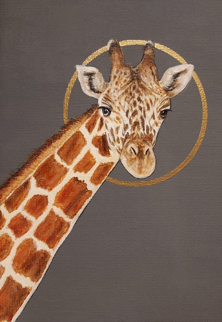 Stanley works mainly in acrylics and mixed media on board and on canvas featuring bold colourful backgrounds. His work ranges from larger scale