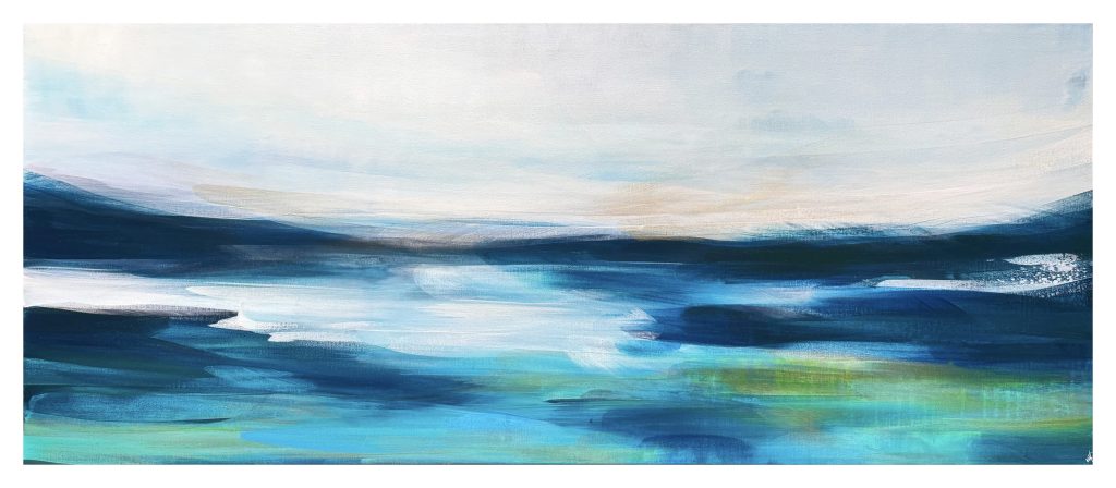 She translates these experiences into bold, striking and abstract paintings. Each artwork is a reflection from a particular place – a memory of a moment.