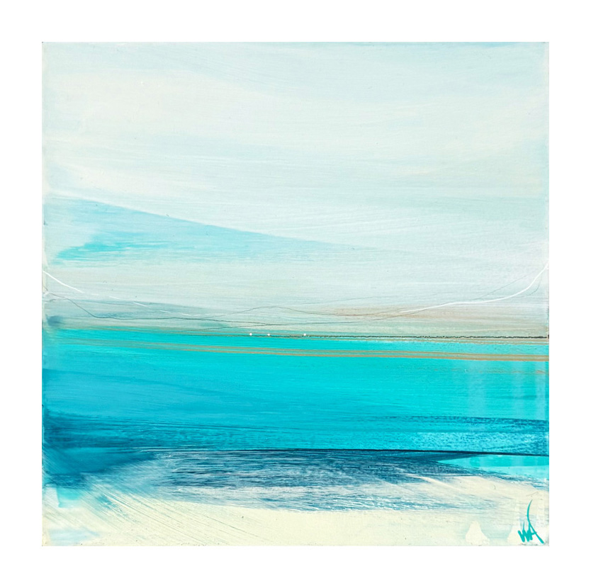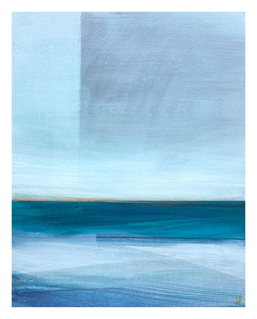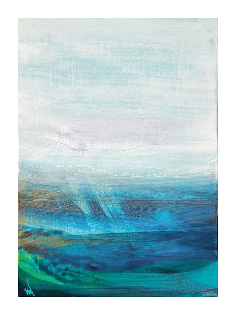 Victoria makes contemporary abstract landscape paintings from her home studio in Angus. She has a deep love of horizon lines found in remote and open spaces – and seeks out colour, shapes and patterns in the places she visits. Her work responds to the changing elements and the rhythm of the landscape and she explores the visual tensions that arise when sky meets sea meets land.